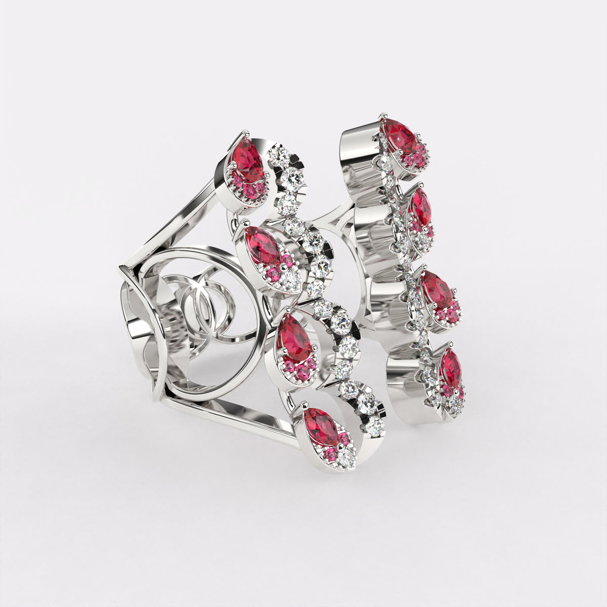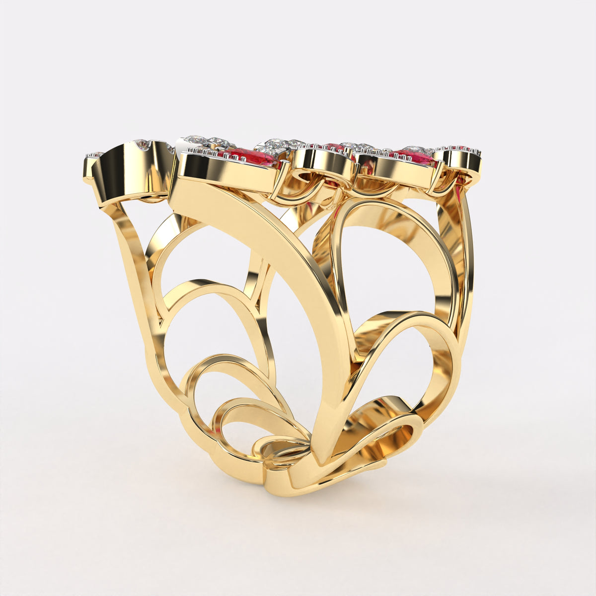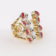 Red Drop Floret Diamond Ring