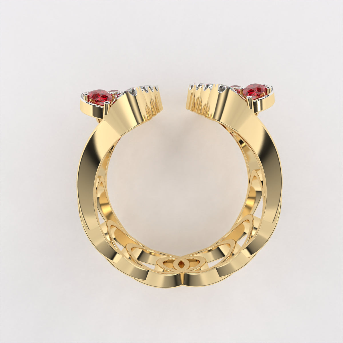Red Drop Floret Diamond Ring - 14Kt / Yellow gold / 7.0