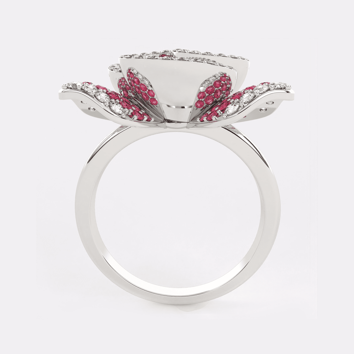 Red Rose Diamond Ring - 14kt / Rose Gold / 7