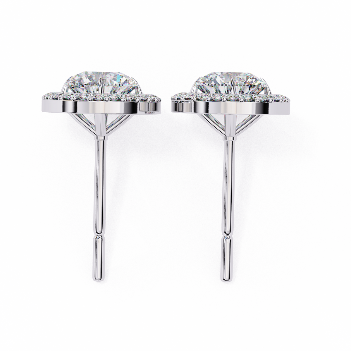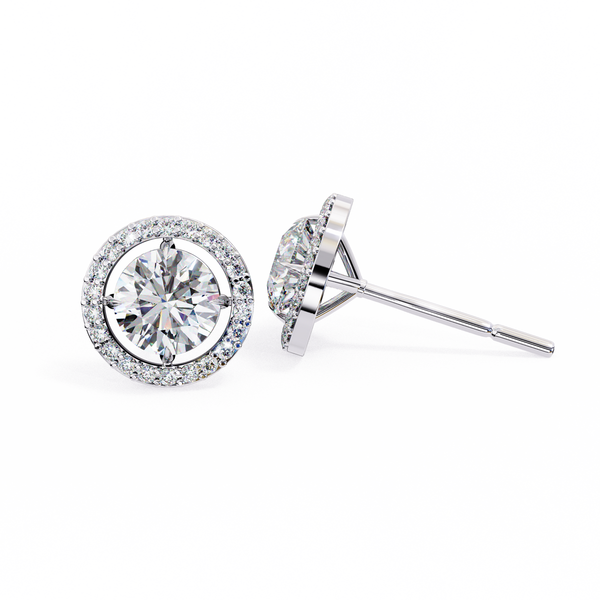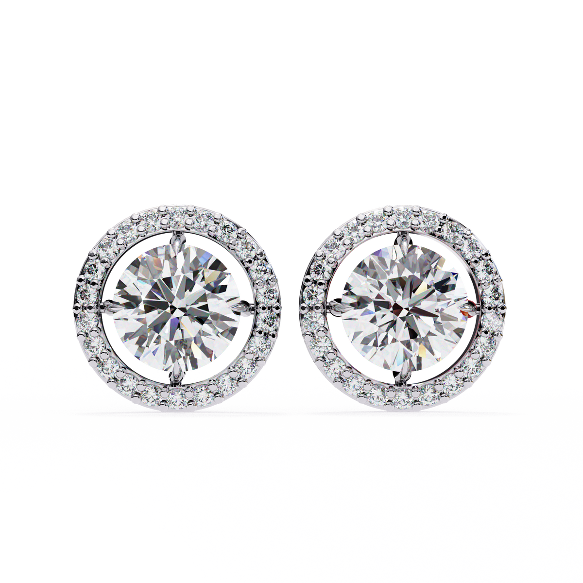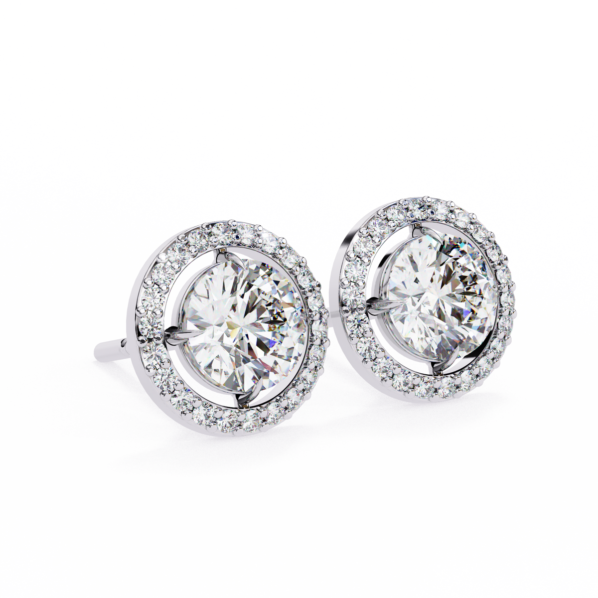 These earrings feature bright lab-grown solitaire diamonds surrounded by a fine halo that enhances their sparkle from every angle. The design keeps a perfect balance between elegance and everyday wear, offering a soft glow and a refined finish. The halo adds just the right amount of brilliance without overwhelming the center stones, making them a timeless choice for any occasion.