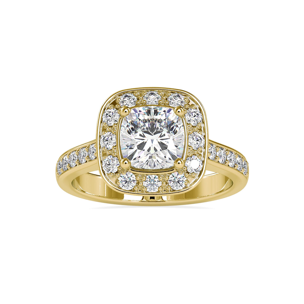 Halo Cushion Gold Diamond Ring - 14kt / Yellow gold / 7.0