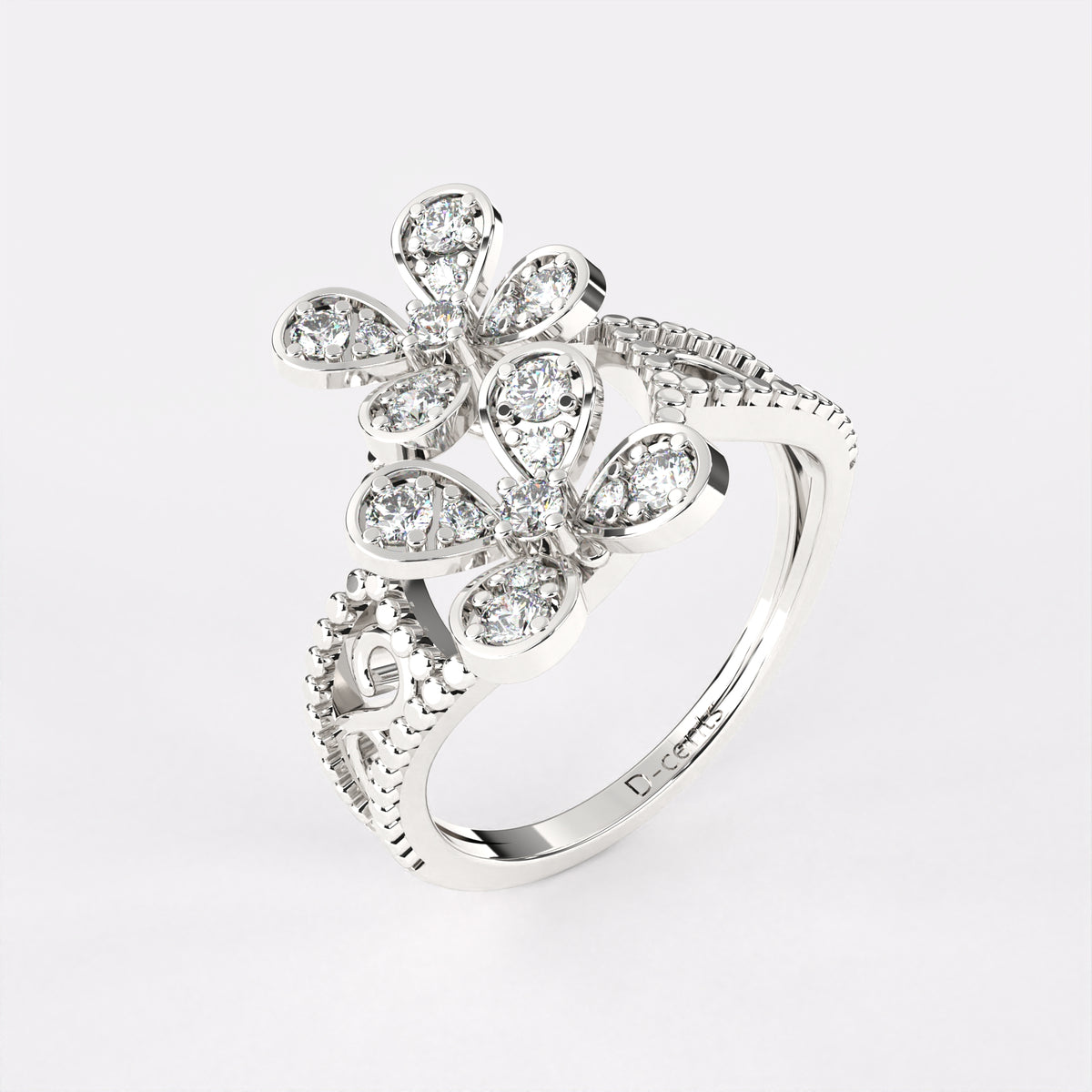 Twin Floret Diamond ring - 14Kt / Yellow gold / 7