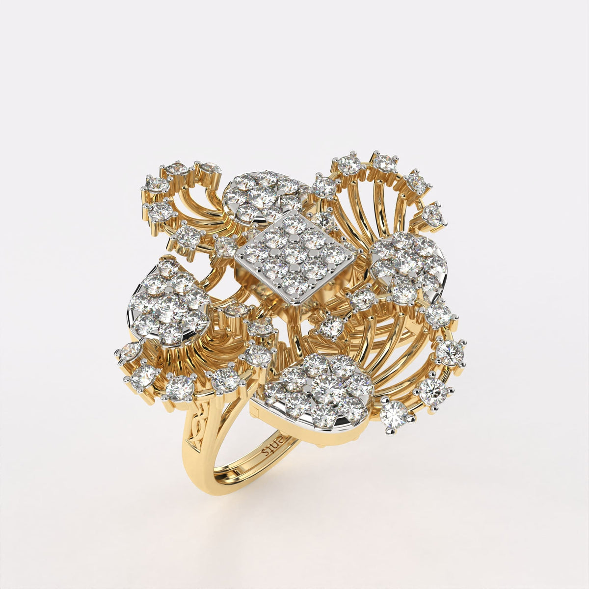 Unique Wide Cocktail Diamond Ring - 14kt / Yellow gold / 7