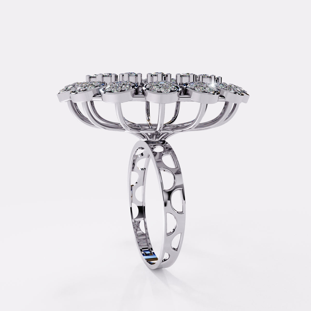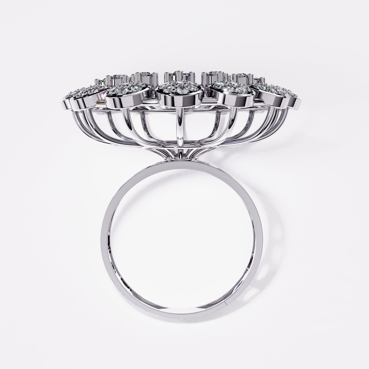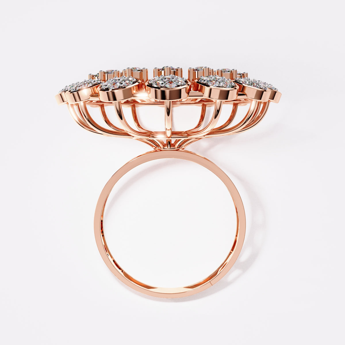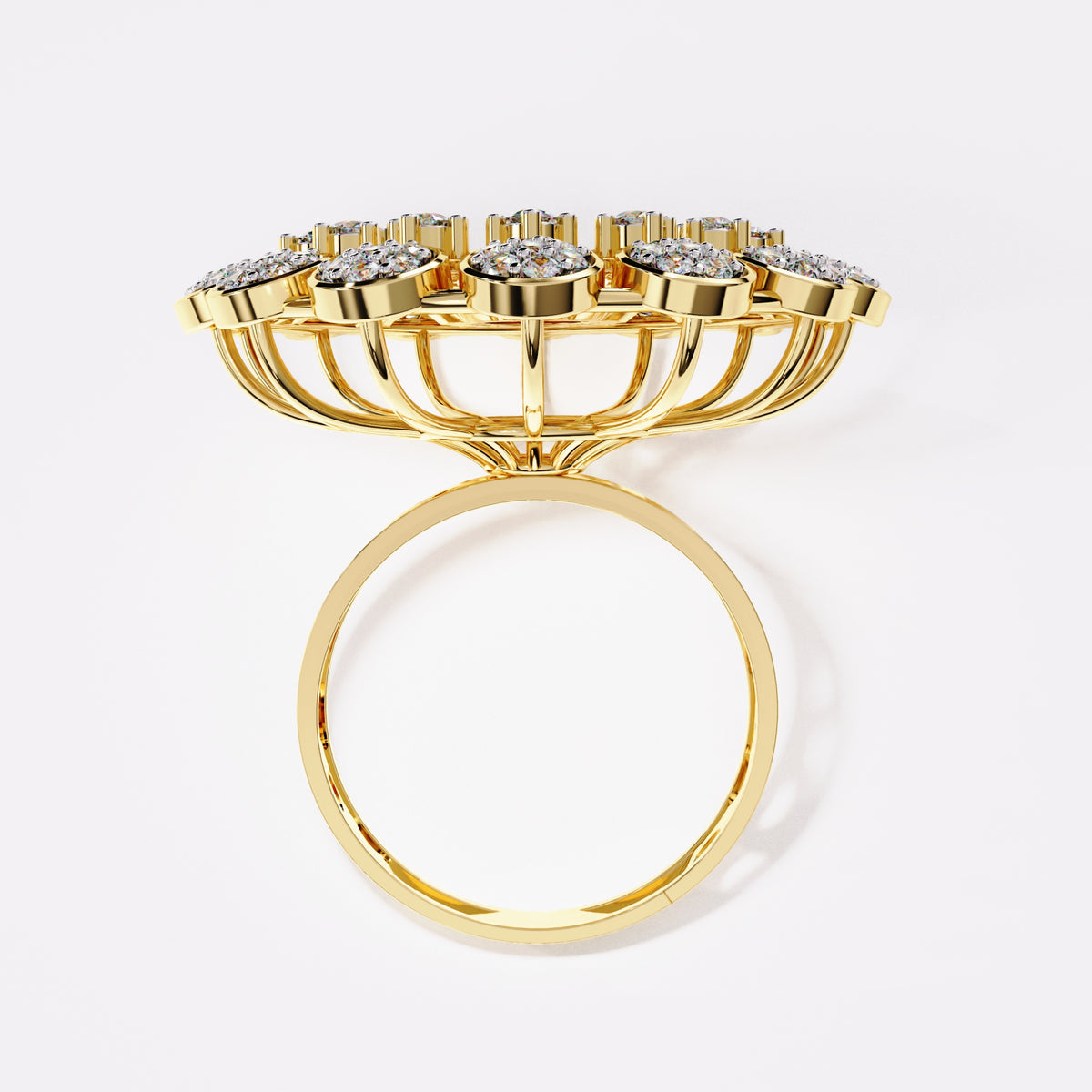 18k Gold Wide Cocktail Diamond Ring - 14Kt / Yellow gold / 7