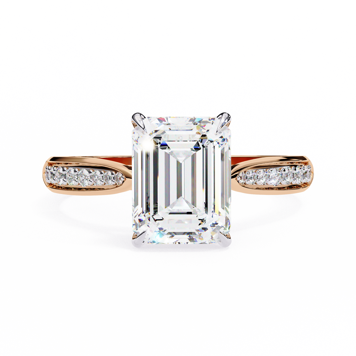 Emerald Cut Ring with Diamond Accents - 14kt / Rose Gold / 7.0