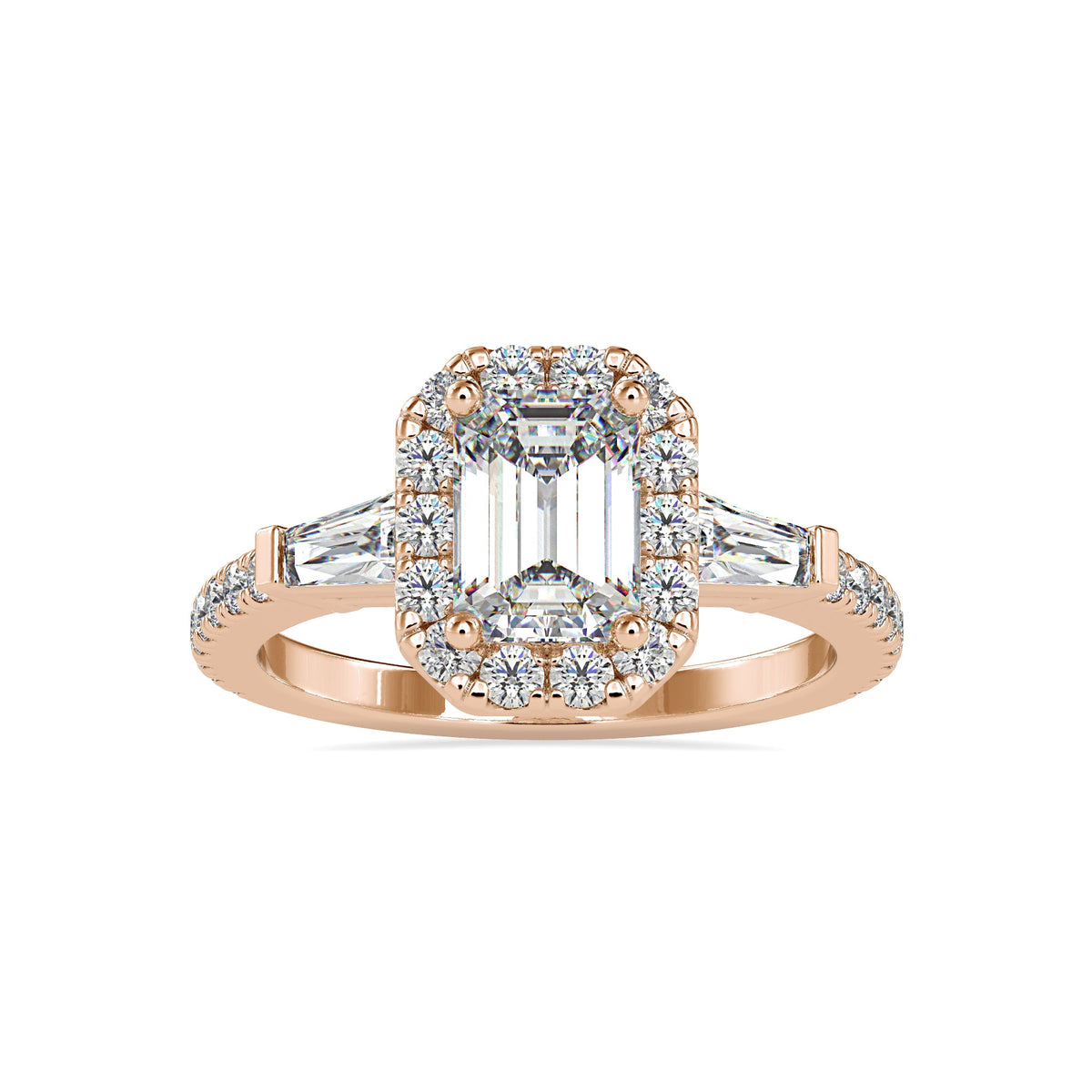 Emerald with Halo Diamond Ring - 14kt / Yellow gold / 7.0