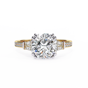 Round Cut Lab Grown Diamond Ring with Tapered Baguette