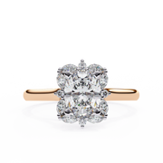 Unique Cluster Diamond Ring with Oval Center and Marquise Petals - 14kt / Rose Gold / 7.0