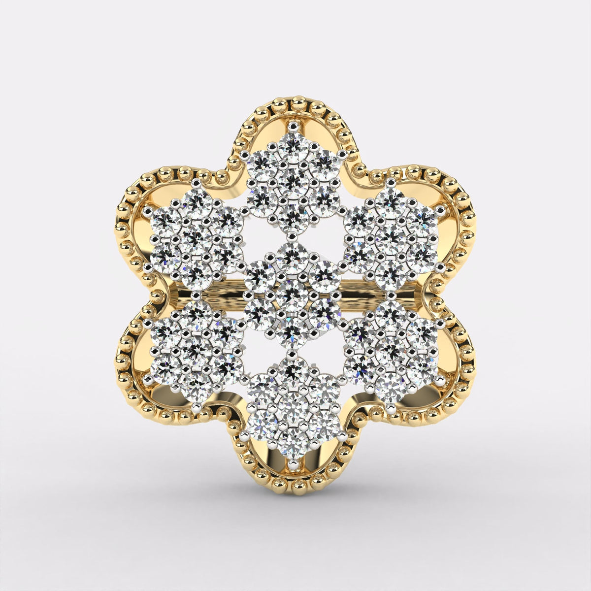 Cluster Flower Diamond Earrings - 14kt / Yellow gold