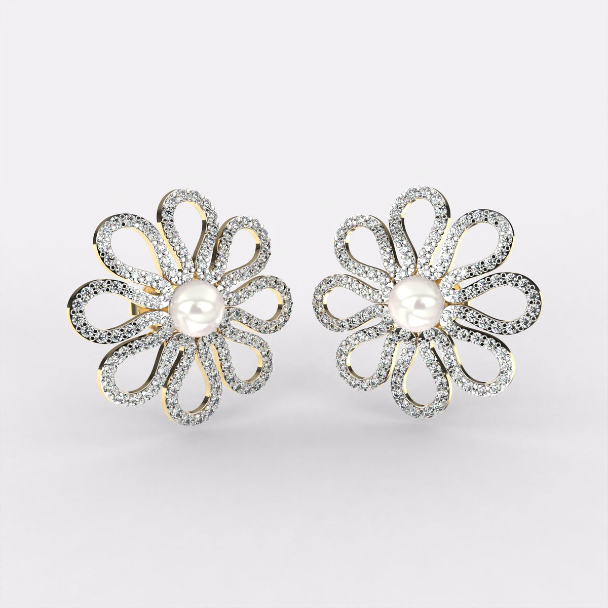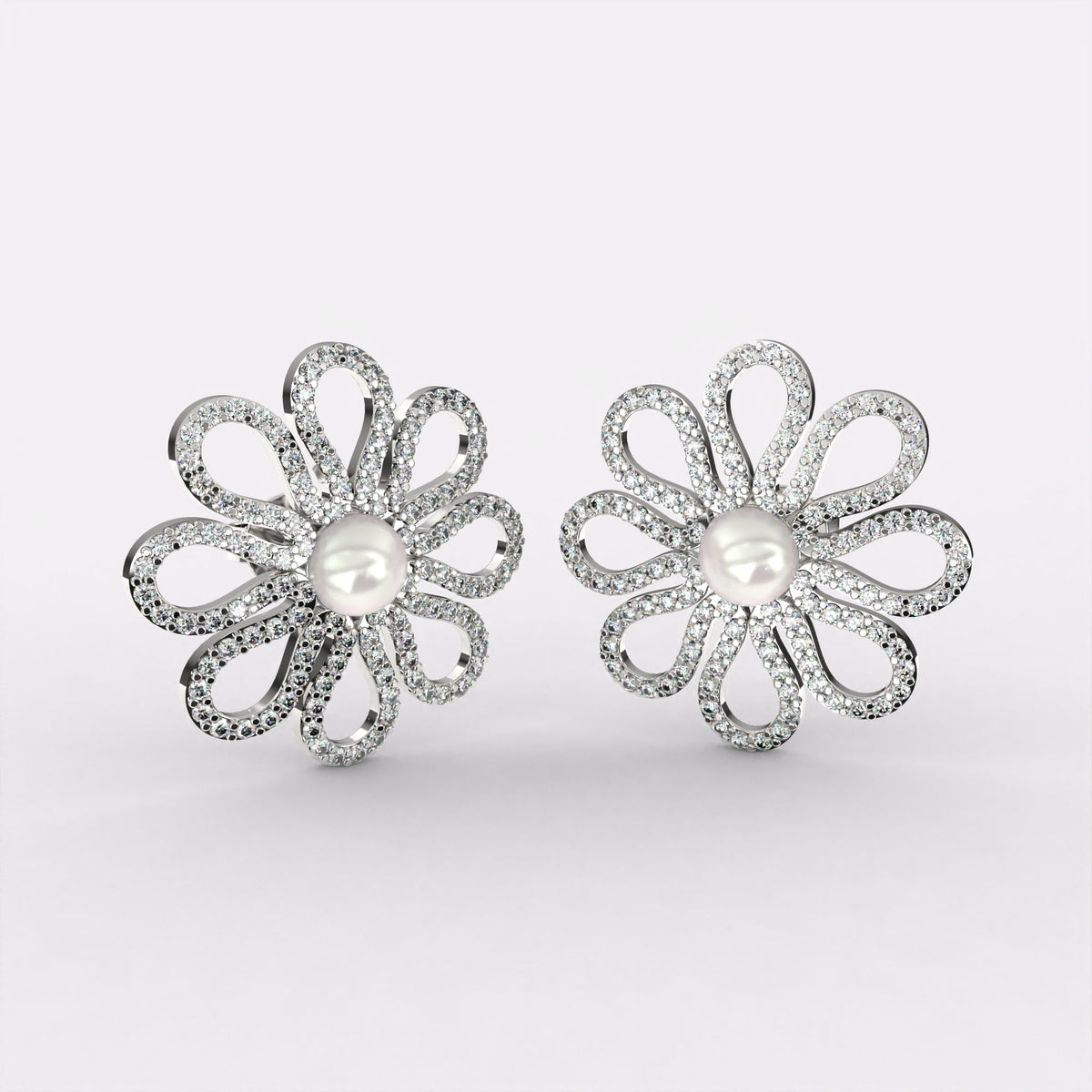 Glittering Petals Diamond Stud Earrings