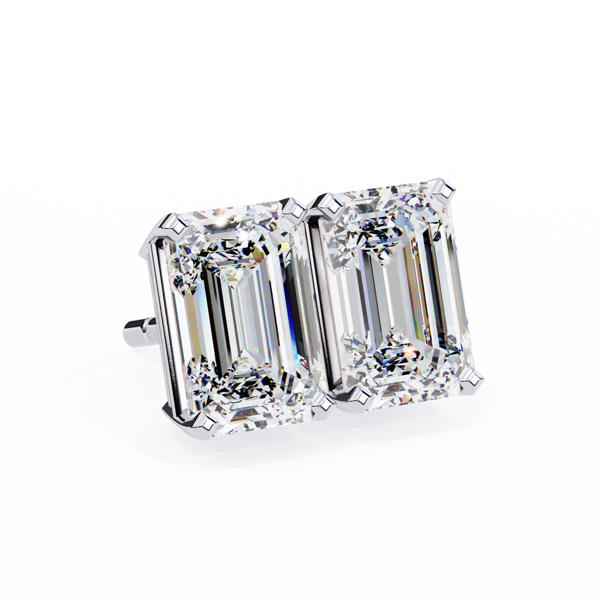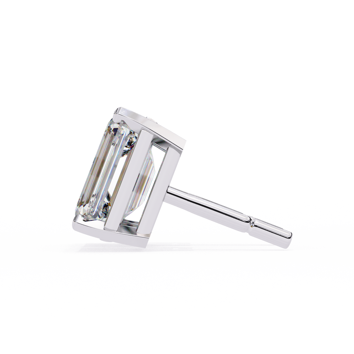 These studs feature 2.40 carats of emerald-cut diamonds, showcasing crisp lines and a clear, mirror-like shine. The classic shape gives them a refined, structured look, while the minimalist setting keeps the focus entirely on the stones. Perfect for everyday elegance or polished evening style, they offer a balanced mix of sophistication and timeless simplicity.