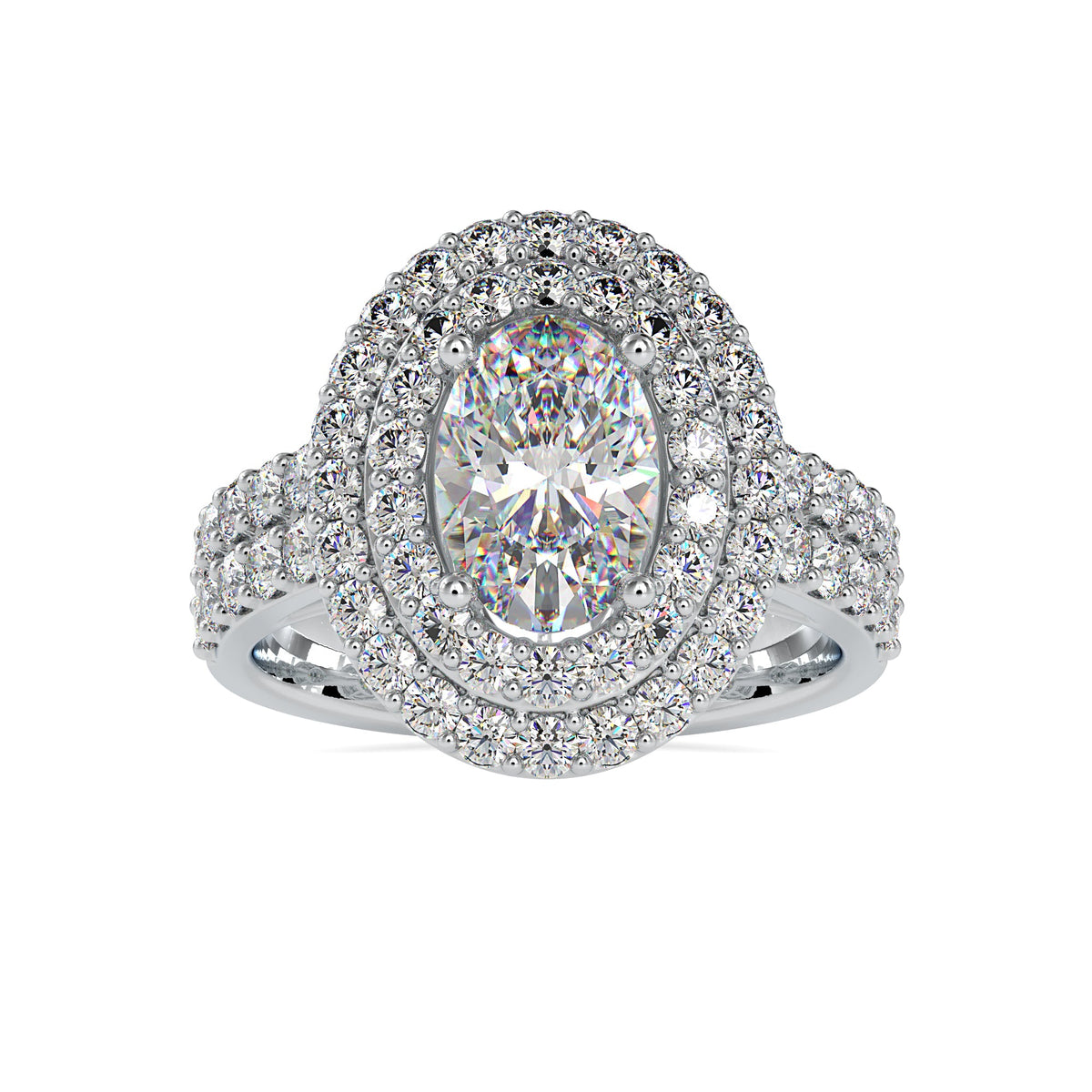 Charming Double Halo Oval Diamond Ring - 14kt / Yellow gold / 7.0