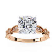 Cushion Cut Diamond Engagement Ring – Vintage Milgrain - 14kt / Rose Gold / 7.0