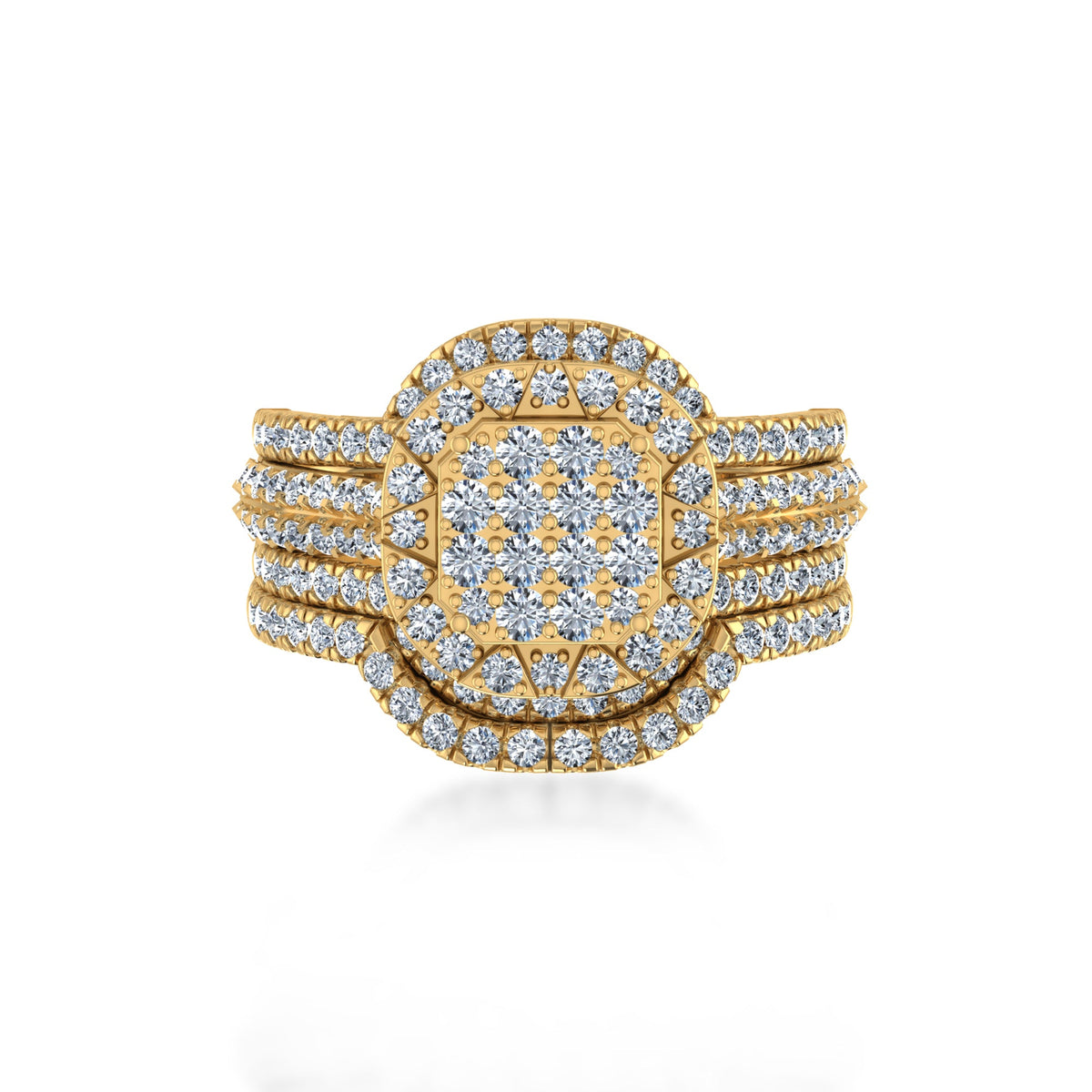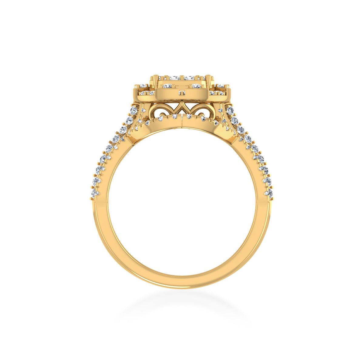 Cushion Cut Style Lab Diamond Cluster Ring - 14kt / Yellow gold / 7.0
