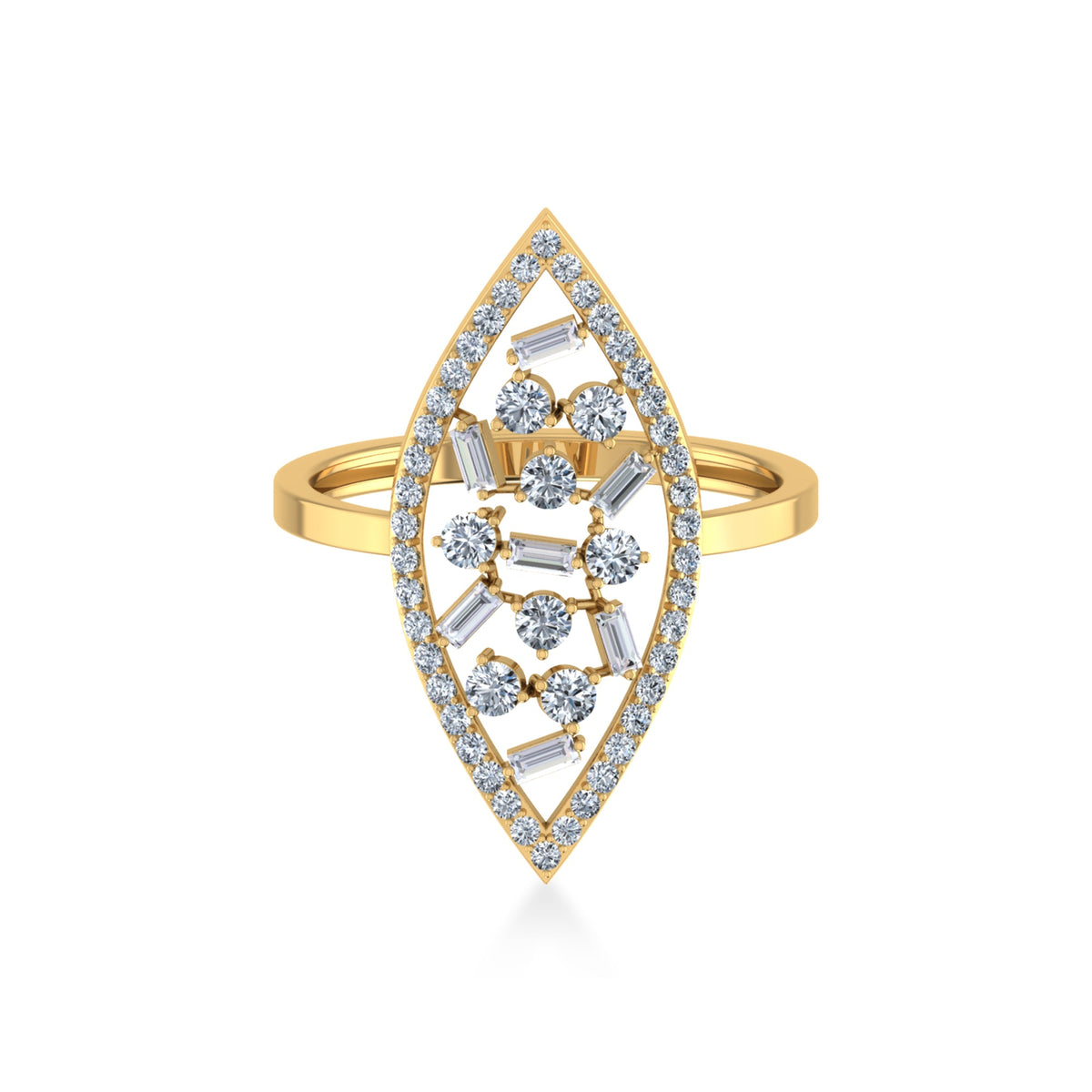 Elegant Marquise Halo Lab-Grown Diamond Ring - 14kt / Yellow gold / 7.0