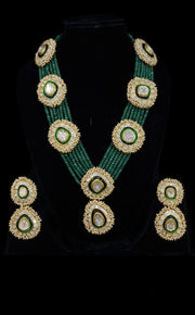 Emerald Green Multi-Strand Beaded Kundan Polki Rani Haar Necklace & Earring Set in 14k Gold