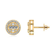 Lab Grown Diamond Round Earrings with Baguette Center - 14kt / Yellow Gold