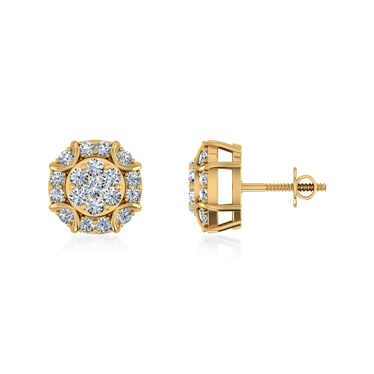 Multi-Diamond Floral Lab Grown Diamond Earrings - 14kt / Yellow Gold