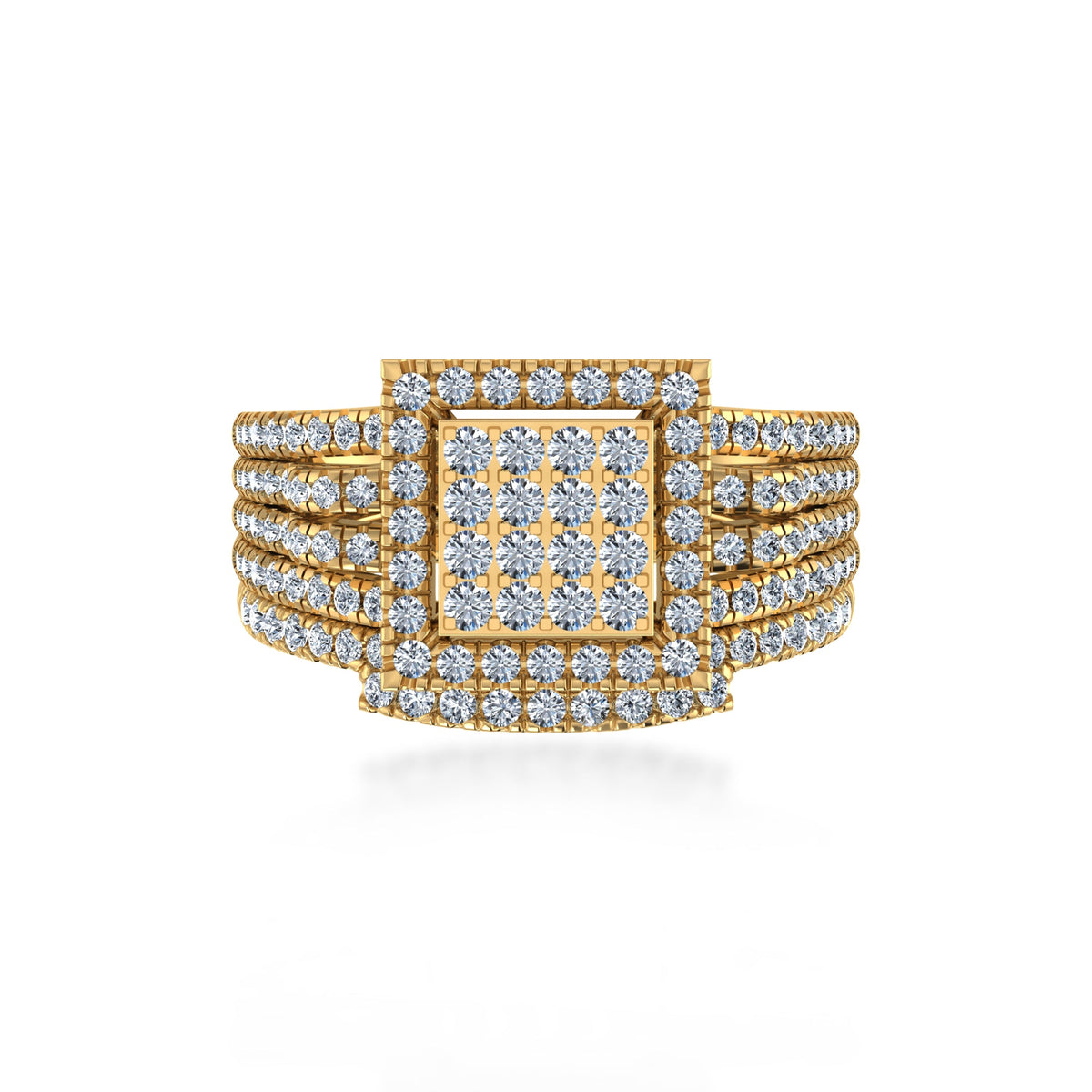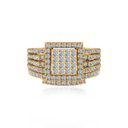 Multi-Row Square Lab Diamond Cocktail Ring - 14kt / Yellow gold / 7.0