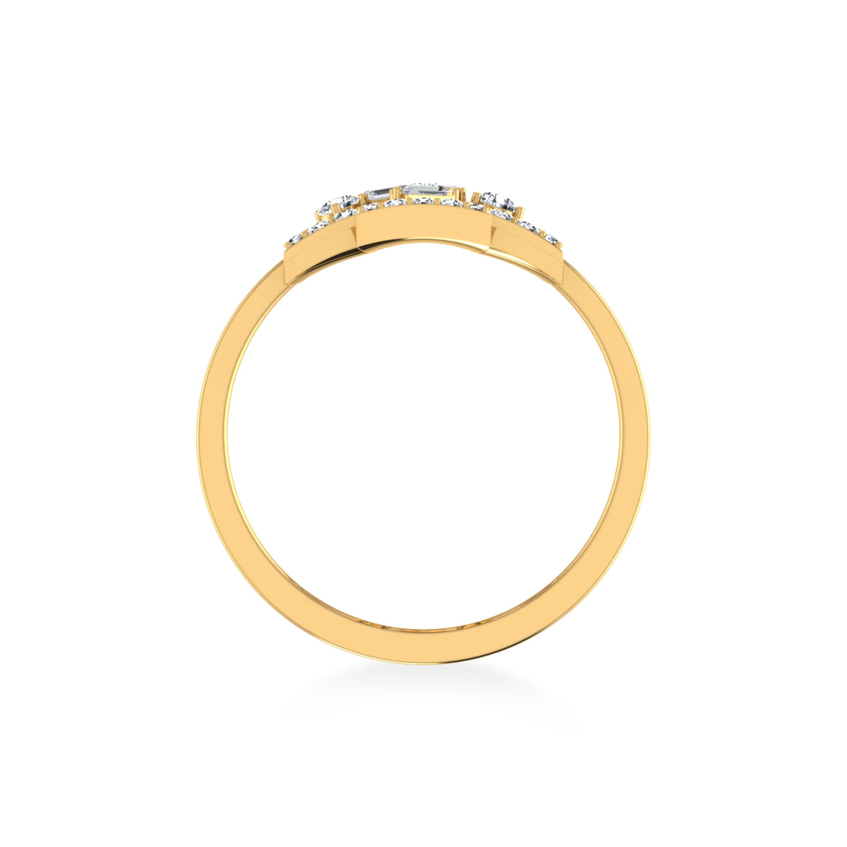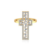 Open Cross Baguette & Round Lab Diamond Ring - 14kt / Yellow gold / 7.0
