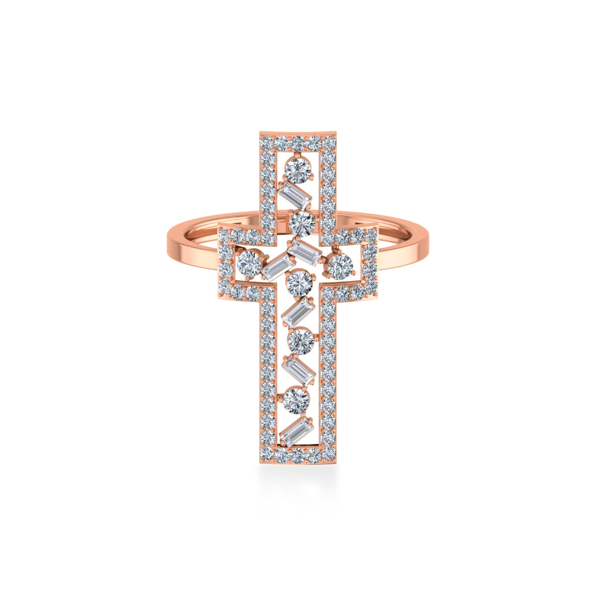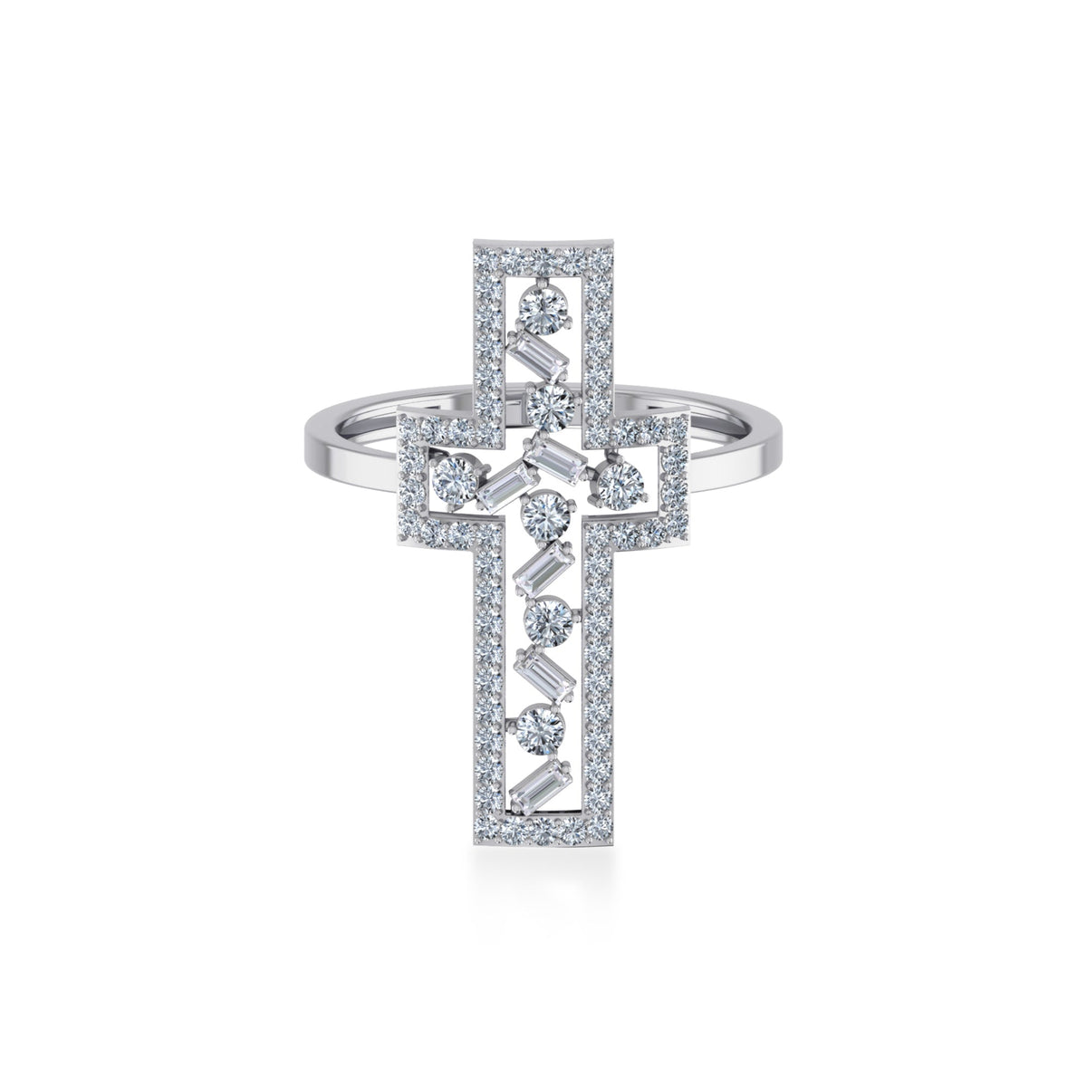 Open Cross Baguette & Round Lab Diamond Ring