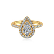 Pear-Shaped Halo Lab-Grown Diamond Ring - 14kt / Yellow gold / 7.0
