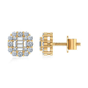 Square Cluster Lab Grown Earrings with Baguette Diamonds - 14kt / Yellow Gold